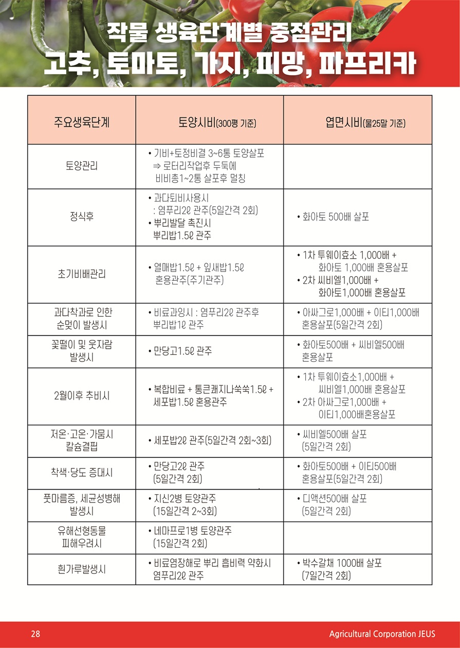 작물 생육단계별 중점관리(고추, 토마토, 가지, 피망, 파프리카)