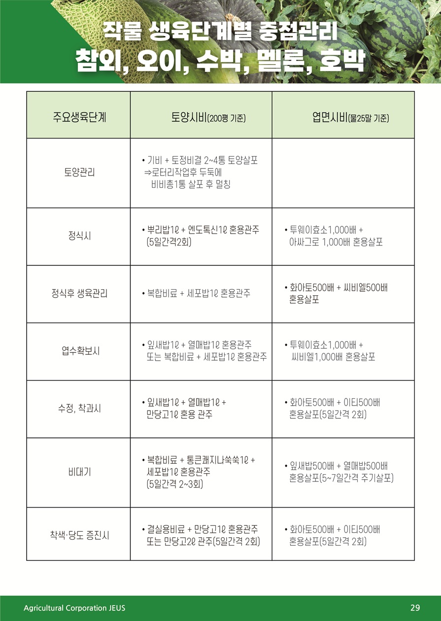 작물 생육단계별 중점관리(참외, 오이, 수박, 멜론, 호박)